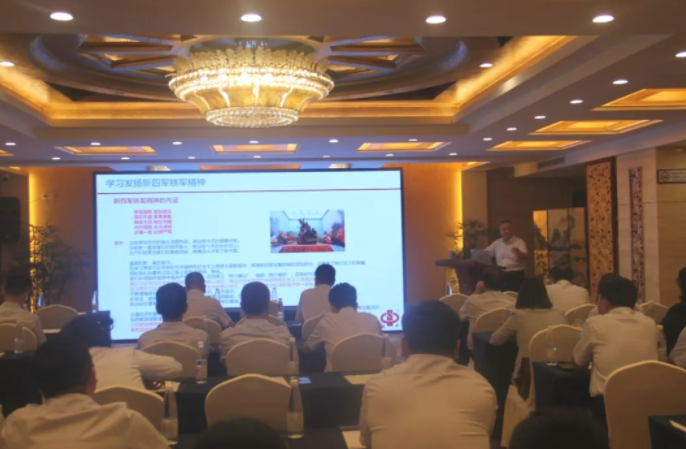 傍晚,党员们集聚撷秀厅,展开了一场以“学习发扬新四军铁军精神,岗位奉献担当有我”为主题的党员教育会议。会议上,营销支部书记卞毅讲述了新四军的发展历程及其勇于担当、无私奉献的精神内涵,并鼓励党员们要将新四军精神融入到工作中,坚决拥护中国共产党的领导,增强政治意识、大局意识、核心意识和看齐意识。