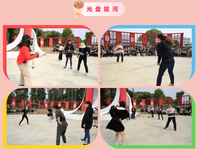 伴随着热烈的掌声,趣味活动正式拉开了帷幕。本次活动设有光盘拔河、徒手穿裤子、穿针引线、手工DIY四个项目,既有个人竞技水平的展示,又有对团队协作能力的考验。赛场上,有趣的游戏一个接一个,本着“友谊第一、比赛第二”的原则,各组队员充分发扬团队集体协作、默契配合精神。比赛现场趣味盎然,加油声、欢笑声此起彼伏,扣人心弦。